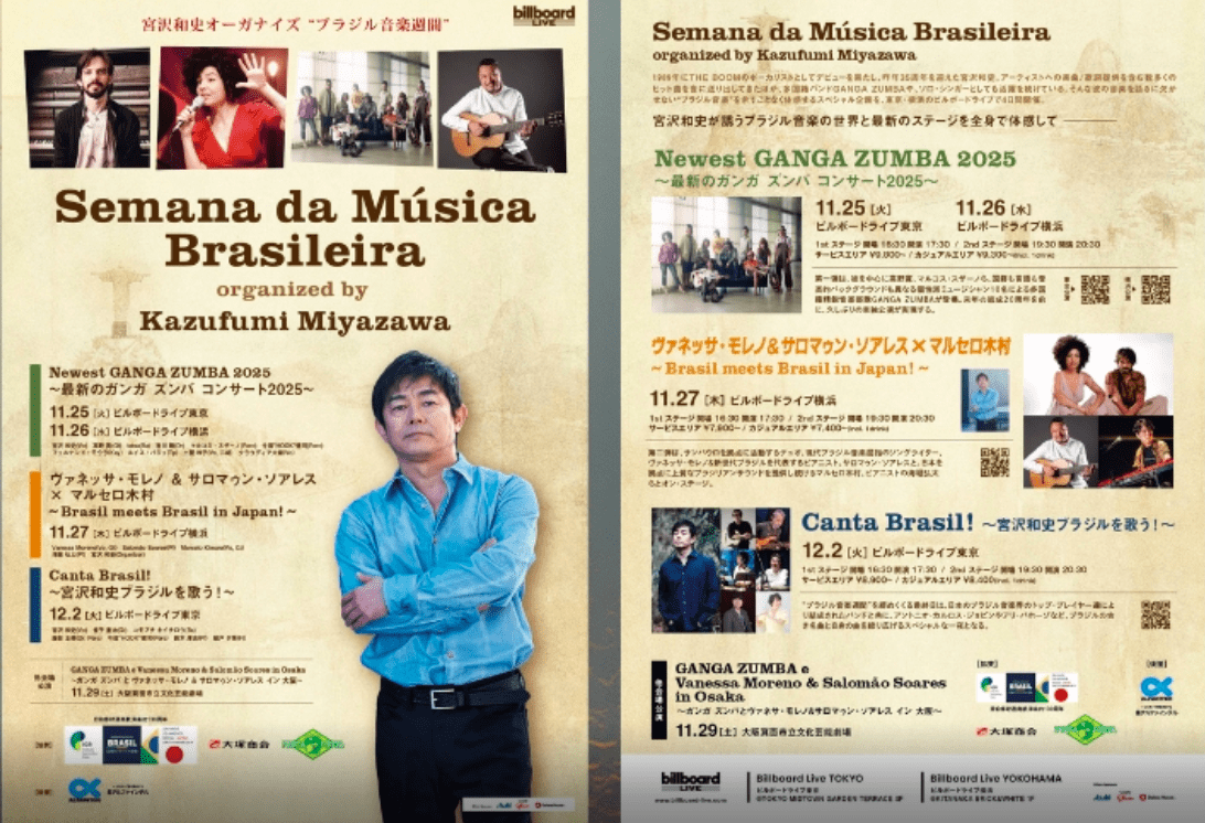 A programação abre com o projeto Ganga Zumba 2025, que mistura ritmos contemporâneos e influências brasileiras, com shows em Tóquio (25/11) e Yokohama (26/11).